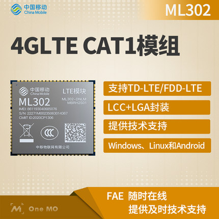 • ML302 4G模組 中國移動OneMO LTE全網(wǎng)通無線通信物聯(lián)網(wǎng)cat1模塊